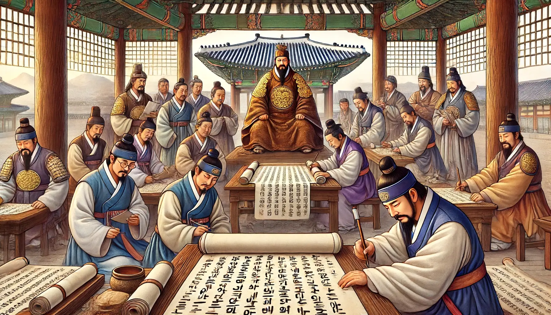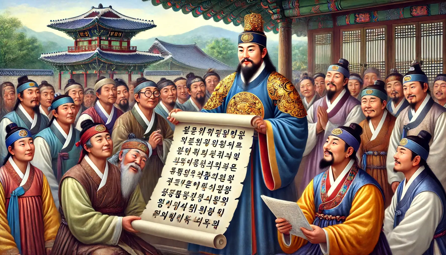 조선 왕조의 네 번째 군주인 세종대왕은 신민의 삶을 개선하는 데 헌신한 선견지명이 있는 통치자였습니다. 그는 교육, 문화 및 거버넌스를 육성하려면 네이티브 스크립트가 필수적이라고 믿었습니다. 1443년 세종대왕은 새로운 문자체계를 개발하기 위해 학자들을 모아 집현전(盆系殿)이라고 불렀습니다. 이 프로젝트는 한국어의 소리를 반영하는 접근 가능하고 효율적인 알파벳을 만들고자 하는 왕의 열망에 의해 추진되었습니다.