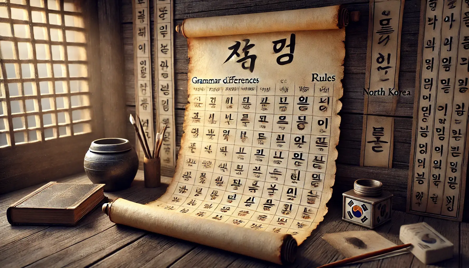 북한과 남한은 문법에도 차이가 있다. 북한은 주체사상과 사회주의사상에 따라 문법을 단순화하고 표준화하기 위해 노력해 왔다. 예를 들어 북한에서는 공손함을 자주 사용하지 않습니다. 이는 평등한 사회를 추구하는 사회주의 이념이 반영된 결과이다. 이러한 문법적 단순화는 언어에서 계층적 요소를 제거하고 시민 간의 평등감을 고취하는 것을 목표로 합니다. 이러한 문법 개혁은 일상적인 의사소통을 이념적 원칙에 맞추려는 북한 내 광범위한 사회 공학적 노력을 나타냅니다.