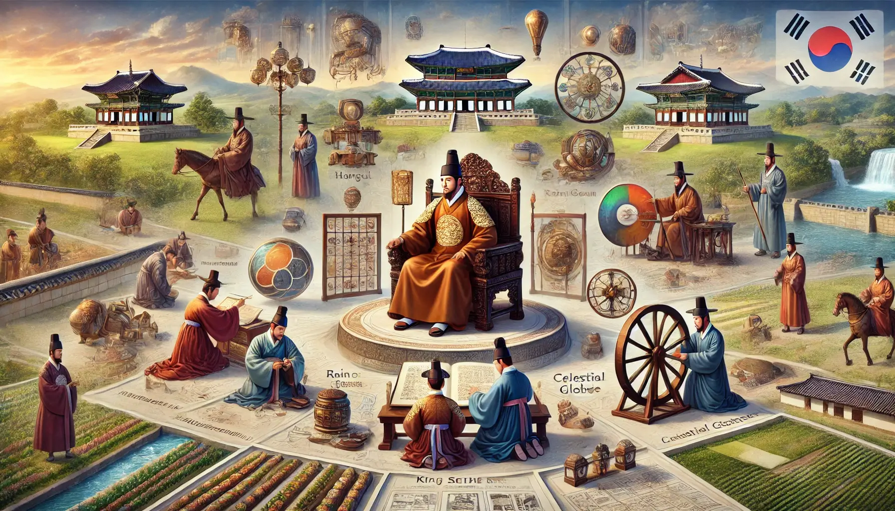 세종대왕은 1397년 태어나 1418년 조선의 4대 왕으로 즉위했습니다. 그는 학문과 예술을 장려하고, 국가의 기틀을 다지기 위해 많은 정책을 펼쳤습니다. 그의 업적 중 가장 중요한 것은 바로 한글의 창제입니다. 세종대왕은 학문을 사랑하고 백성을 아끼는 마음으로 여러 분야에서 큰 변화를 이끌었습니다.